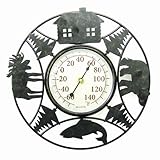 (More customer reviews)Really like this one because it is very easy to read. I bought it for my dad for Father's day and he uses it up at his cabin. The thermometer is hung on a tree about 60 ft away from the cabin and can still be easily read through the windows without having to squint. It's decorative but the decoration isn't on the part you are trying to read so that's why I really liked it.