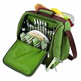 (More customer reviews)The Picnic Time Solano Insulated Picnic Tote is perfect for a light picnic with a small group. It includes a service for four (glasses, plates, napkins, silverware, cutting board w/cheese knife, corkscrew, & salt/pepper shakers) that is just enough to do the job. Everything is strapped in with elastic or mesh and stays well in place. The insulated portion of the bag is located in the back zipper and includes enough room for light to heavy picnic fair. The amount of space available will hold enough food for up to 4 people very easily. It will also hold a bottle of wine if you pack things creatively. So there's no need for a separate wine tote.